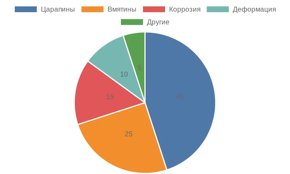 Из диаграммы видно, что царапины составляют почти половину проблем, что оправдывает приоритет оберточной бумаги. Гипотеза: интеграция этого материала в стандартные процедуры снизит общий брак; для подтверждения нужны полевые испытания на трассах вроде Р-254.