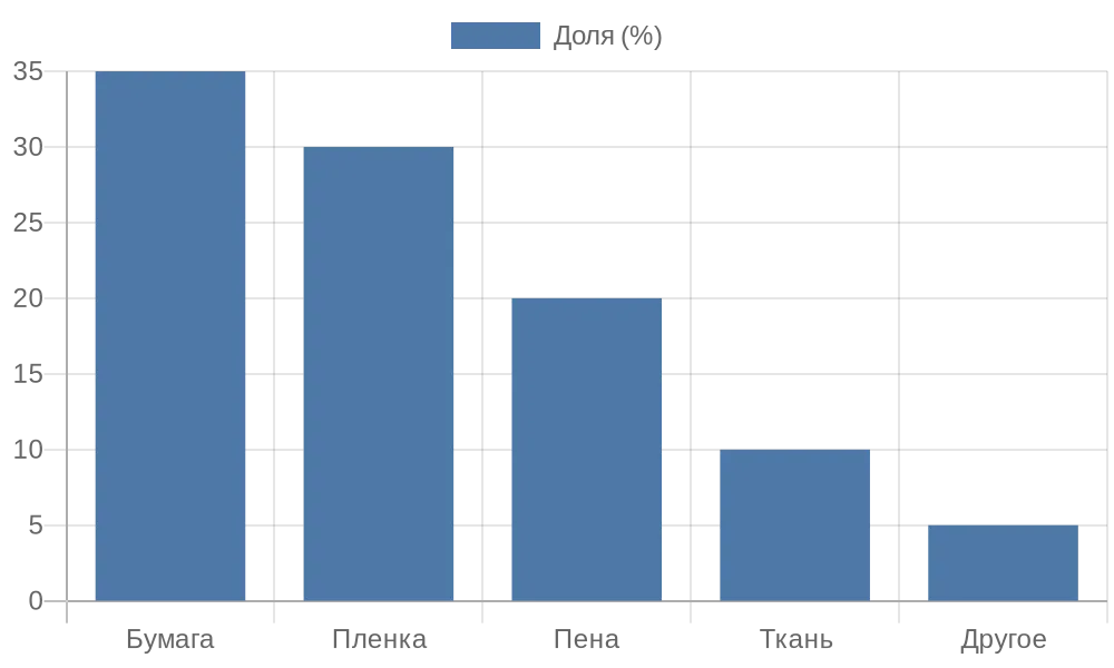 Чтобы оценить распределение использования материалов в отрасли, обратите внимание на бар-чарт, отражающий доли по опросам среди российских логистических фирм. Он помогает понять тренды на 2026 год.